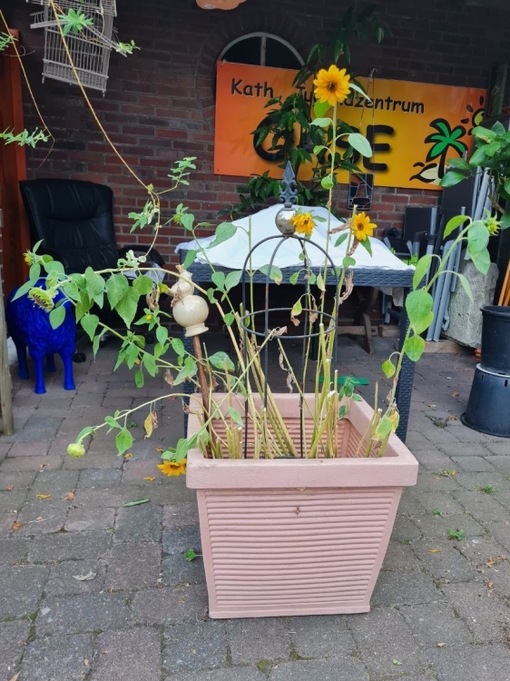 Während meine Sonnenblume noch Kerne bildet ( hoffentlich ) und mein Plan B gerade erst seine Blüten bekommt, konnte Inga ernten. Es geht weiter. 🥰
