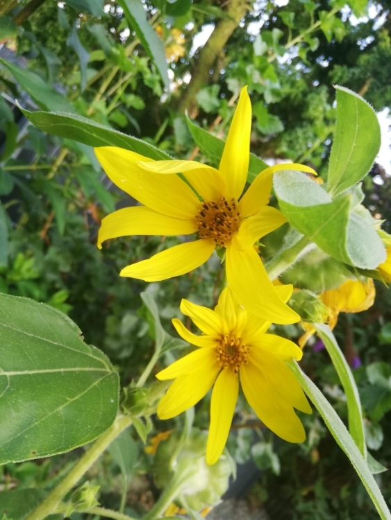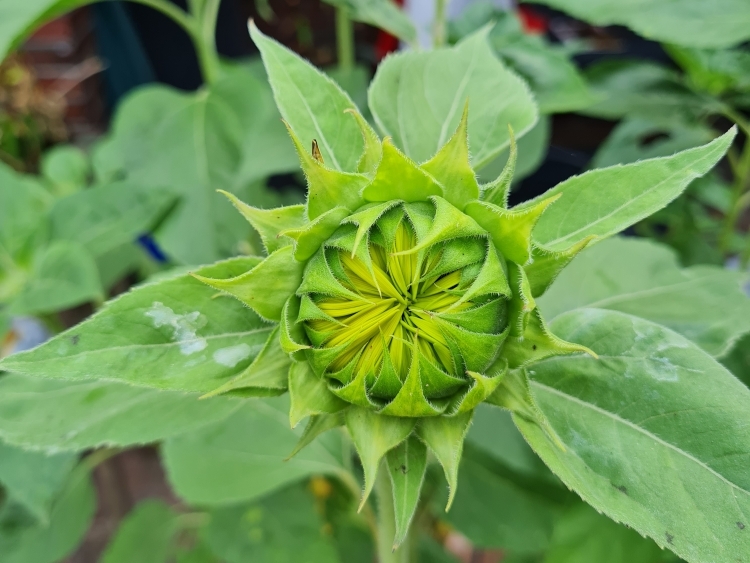 Die Schnecken ( toitoitoi ) sind weg geblieben dieses Jahr und auch die Maikäferlarven ( noch nie zuvor gesehen ) haben den Sonnenblumen nicht übermässig geschadet. Ein bisschen mitgenommen sahen sie trotzdem aus, aber im Großen und Ganzen sieht es gut aus und ich freue mich auf die Blüten. :o)