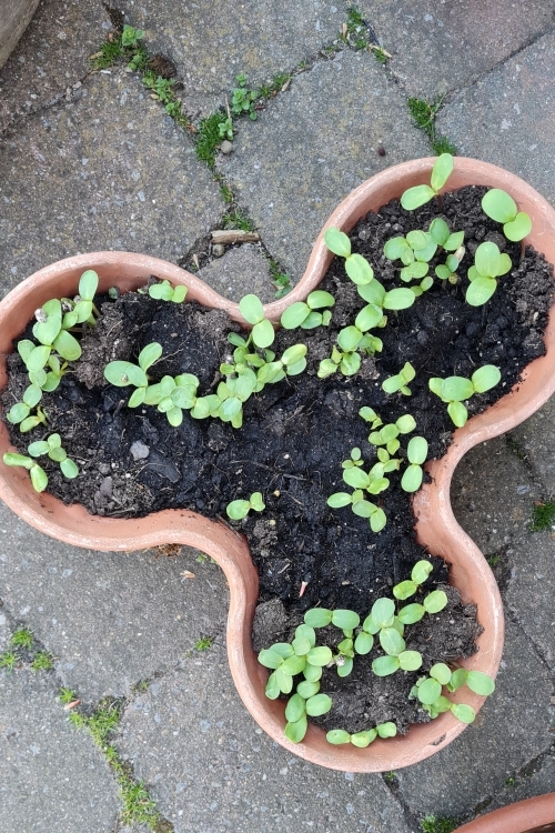Letztes Jahr gab es ja wirklich tolle Sonnenblumen. Und so unterschiedlich. Ich habe einige geernted und bekommen – und bin sehr neuguierg, wie es dieses Jahr wird. Es lief ja nicht ganz so gut und deswegen versuche ich es auf verschiedenen Wegen. Zum einen habe ich Samen direkt im Rasen „verbuddelt“. Ein Versuch ohne Vorziehen, direkt an den Platz. Dann gibt es einzelne Samen im Topf. Und zum guten Schluß, einfach eine Handvoll in einen gemeinsamen Topf, mit späterem Umpflanzen.