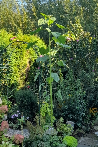Da meine nicht ausgepflanzt wurden, sind sie recht klein geblieben. Die, die bei Freunden in die Freiheit gelassen wurden und die Schnecken überlebt haben, sind an die zwei Meter geworden. Wow!